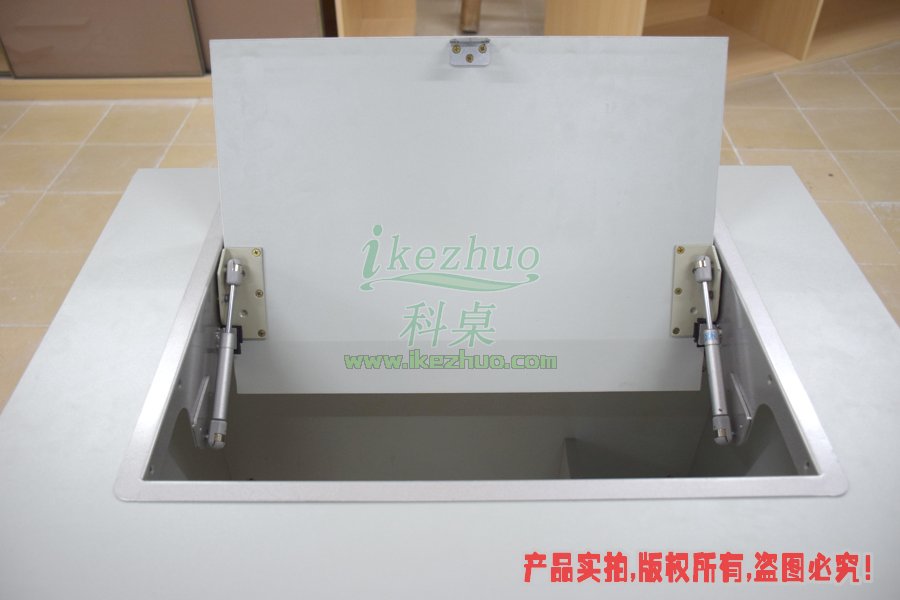 4、當(dāng)不使用顯示器時(shí),可手動(dòng)按下顯示器翻蓋面板至桌面平整,顯示器自動(dòng)鎖住隱藏在桌子內(nèi)部,此時(shí)整個(gè)桌面成一個(gè)平面狀態(tài)