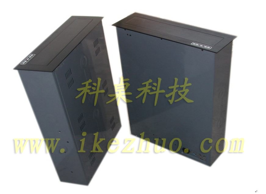 19寸科桌液晶屏升降器需要使用顯示屏時,隱藏在會議桌內部的升降機把顯示屏從會議下面升到桌子表面;當不使用顯示屏時,升降機自動下降,顯示屏隱藏在會議桌內部,防盜、防塵;保持桌子表面的平整和美觀。